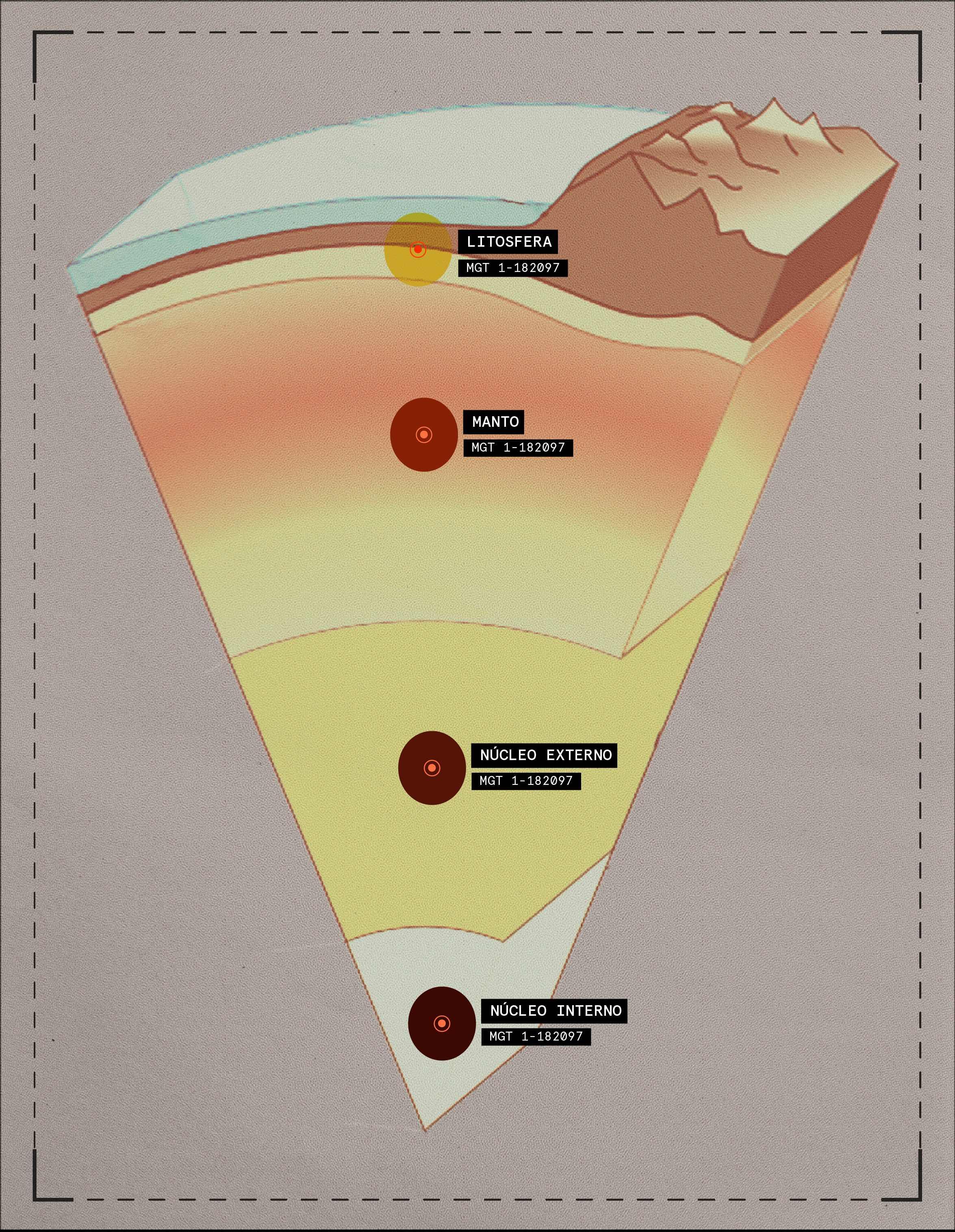 La Tierra está compuesta, principalmente, por tres partes: el núcleo (punto central de una temperatura de hasta 9.000ºC), el manto (la más grande, roca parcialmente fundida como un gel) y la corteza (zona más superficial totalmente rígida). Las diferentes temperaturas entre estas partes generan movimientos constantes que chocan, se fracturan o se hunden, creando deformaciones, destrucciones e incluso creación de nuevas estructuras de tierra.