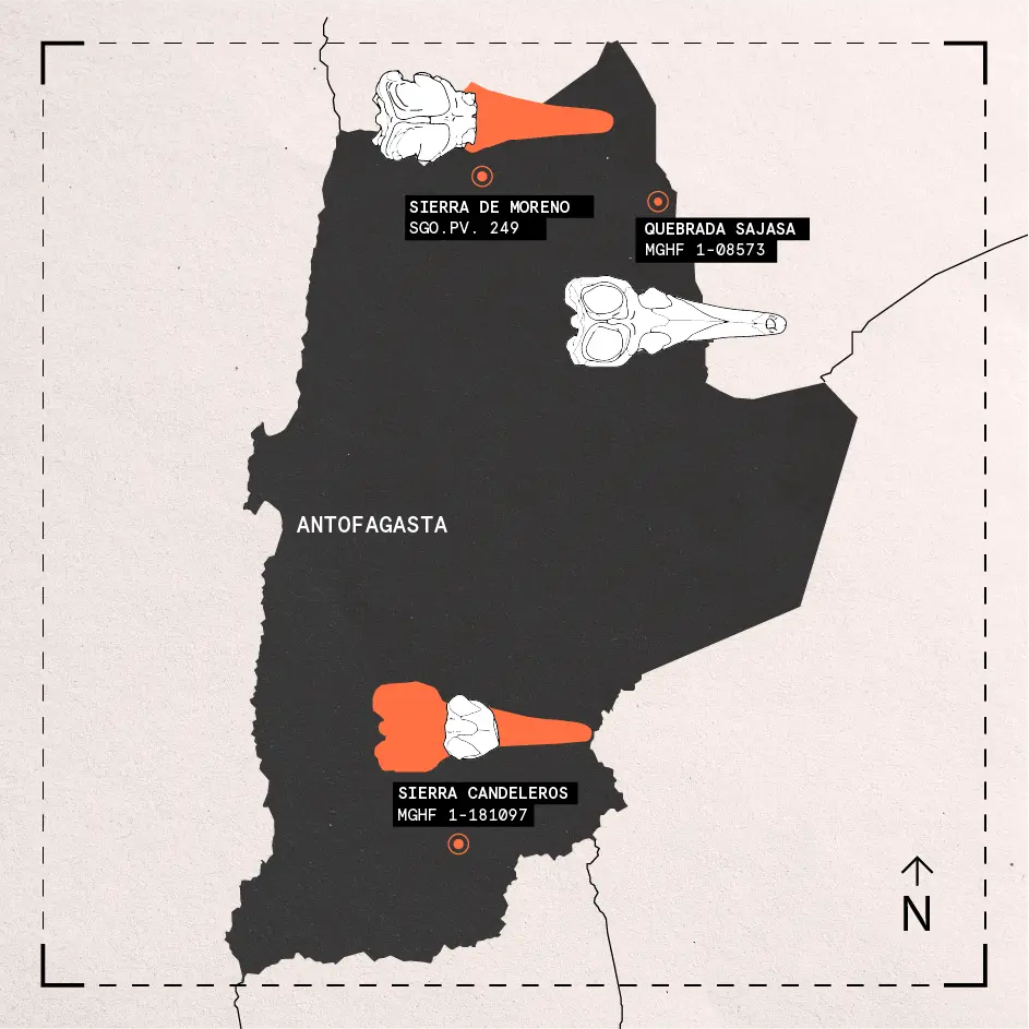 - Fotografía propia de Martín Chávez (2016). Holotipo en el Museo Geológico Humberto Fuenzalida, Antofagasta.