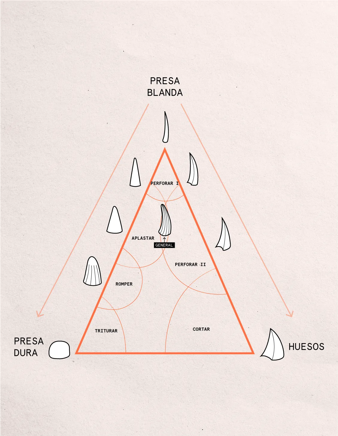 Este tipo de dientes estaban bien adaptados para perforar su alimento, pero no para desgarrarlo.